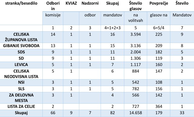 Na zadnji seji celjskega mestnega sveta sta župan in predsednik KVIAZ-a govorila o visoki politični kulturi in proporcionalni zasedenosti mest posameznih političnih strank v delovnih telesih mestnega sveta glede na dosežene rezultate na zadnjih lokalnih volitvah.